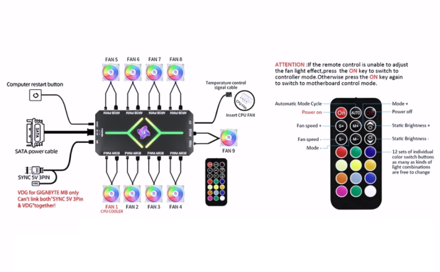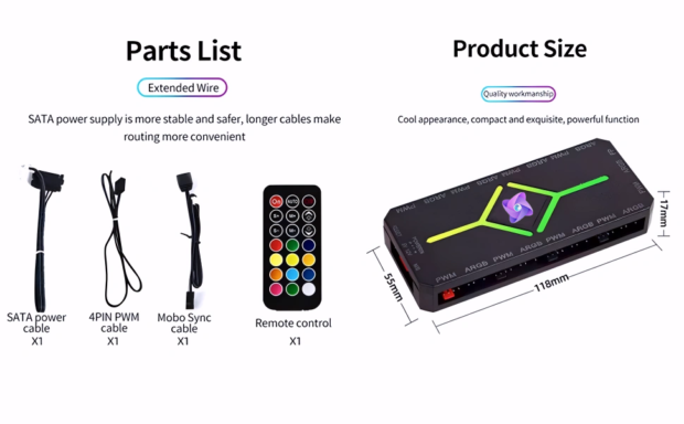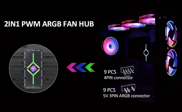 - Universal ARGB Lighting Control: Connect and manage up to 10 ARGB devices including fans, LED strips, coolers and heatsinks for synchronized lighting effects.